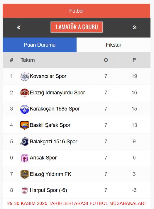 7. haftada hem A hem B grubunda zirve yarışını bırakmayan takımlar, haftayı kayıpsız kapatarak güçlerini bir kez daha gösterdi. Özellikle Kovancılarspor’un farklı galibiyeti, haftanın en çarpıcı skoru olarak öne çıktı.