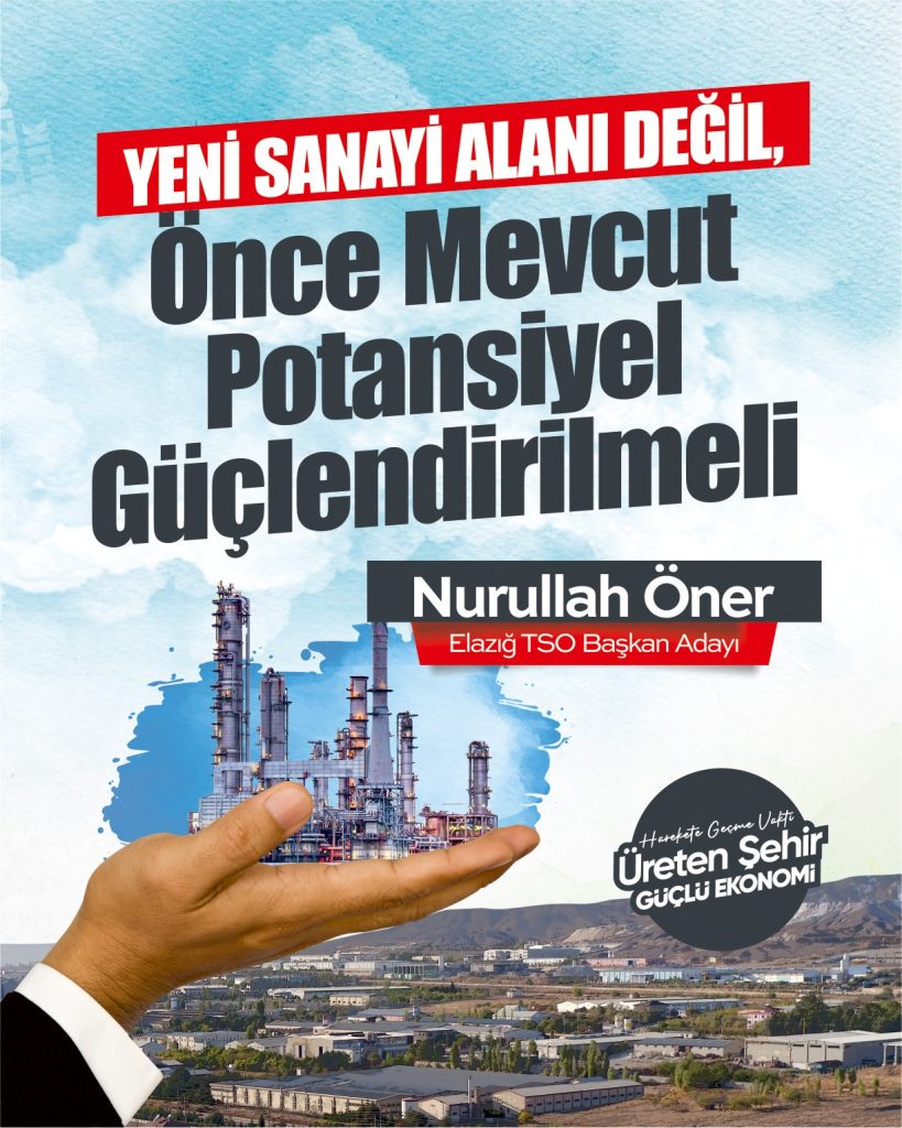 Elazığ Ticaret ve Sanayi Odası Başkan Adayı Nurullah Öner, Sanayi ve Teknoloji Bakanlığı’nın açıkladığı yeni yatırım alanları sürecine ilişkin değerlendirmelerde bulunarak, tartışmaların siyasete sıkıştığını, asıl önceliğin mevcut sanayi altyapısının verimli, sürdürülebilir ve işlevsel hale getirilmesi olduğunu söyledi.