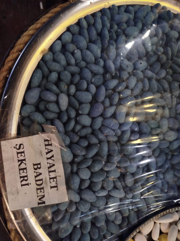 Tarçınlı ve zencefilli mavi badem şekerlerinin çocuk gelişimi için önerildiğini vurgulayan Özpolat, bu ürünlerin kış aylarında öksürük kesici etkisiyle tercih edildiğini belirtti. Ayrıca badem şekerlerinin nohut ağacından yapıldığını ve ağız kokusuna iyi geldiğini söyledi.