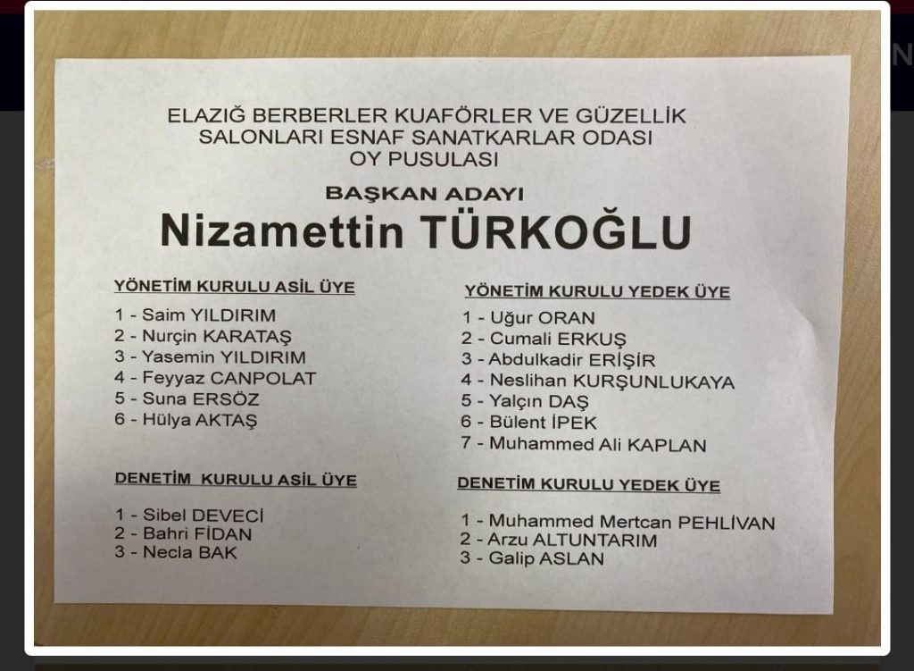 Elazığ Berberler, Kuaförler ve Güzellik Salonları Odası Başkanı Nizamettin Türkoğlu, oy kullanmaya gelen ve kendilerini yalnız bırakmayan bütün odaya üye meslektaşlarına teşekkür etti.