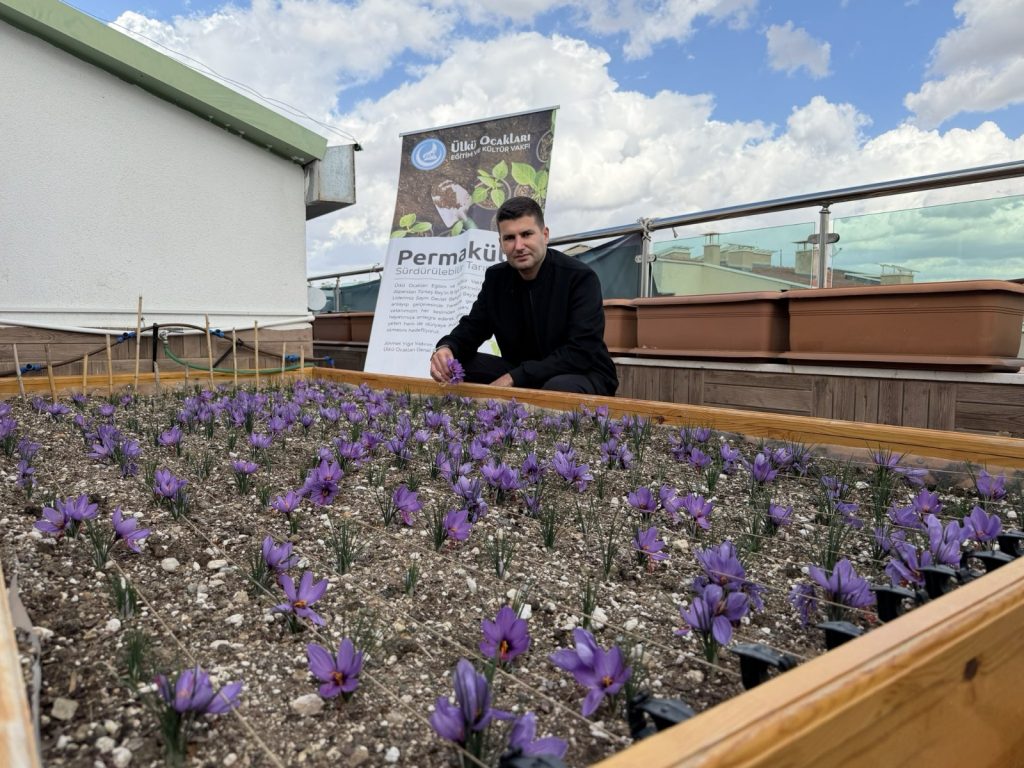 Ülkü Ocakları Genel Merkez binasının terasında renkli görüntüler yaşandı. Ülkü Ocakları, binanın çatısında safran yetiştirmeyi başardı.